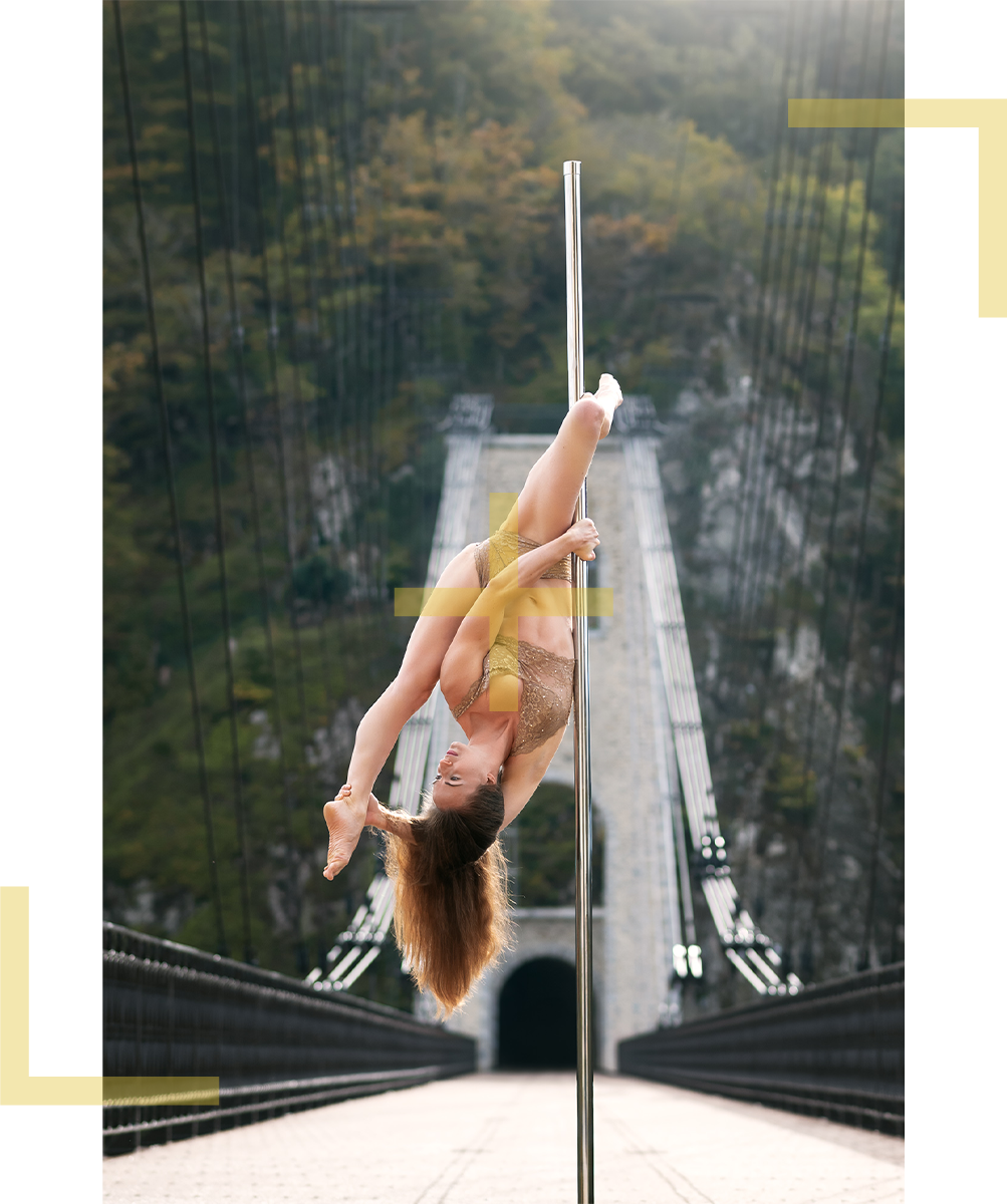 Direction le Pont suspendu de Saint-Marien pour un shooting placé sous le signe de l’élégance. Ce site d’exception offre un contraste saisissant entre la rigueur de sa structure métallique et la douceur du paysage qui l’entoure. C’est le cadre idéal pour souligner vos poses de pole dance.